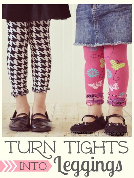 In the last week, I have had three different moms tell me that their daughter didn’t like tights. Now that I think about it, I don’t really like tights either. They are hard to get on little ones and they make my feet feel claustrophobic. Now you can convert those darling tights into even cuter leggings. Follow this easy step-by-step tutorial from U Create and you will have some brand new leggings for fall.